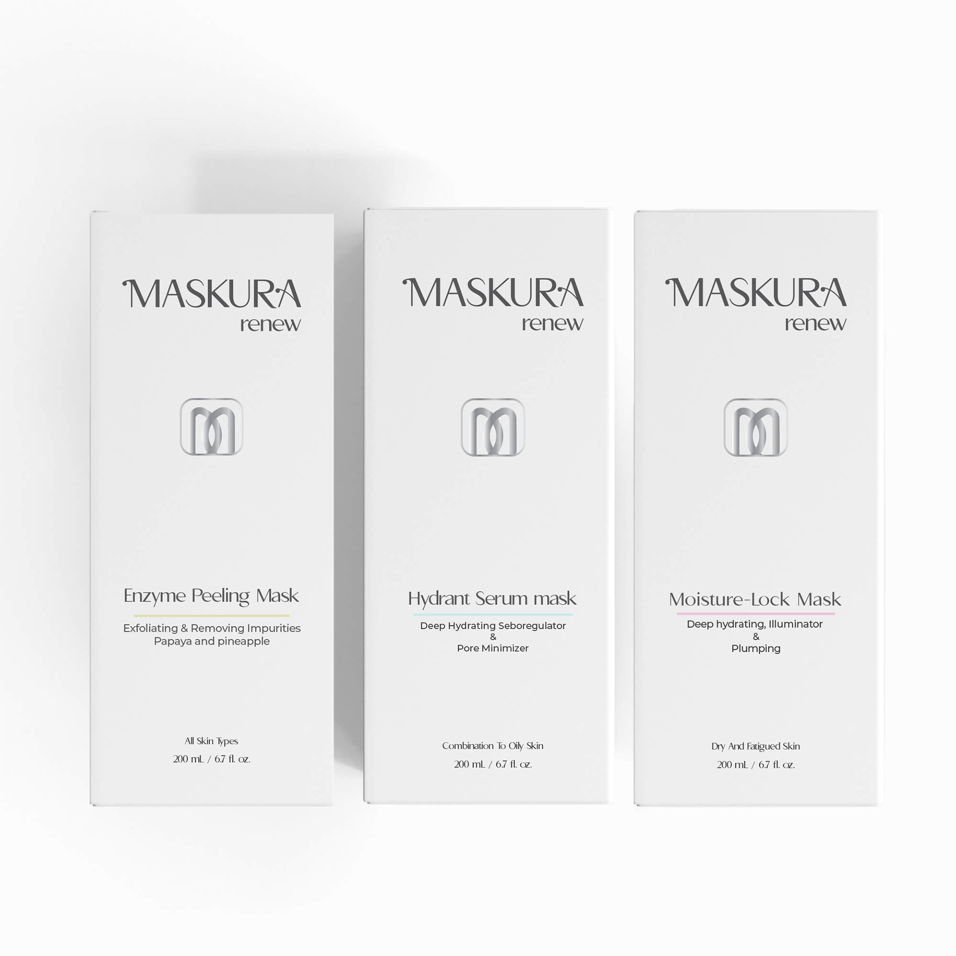 Maskura Renew is a skincare brand dedicated to renewal, balance, and confidence. Our role was to develop a complete brand identity that communicates both clinical trust and modern elegance. We began by crafting a minimal, clean logo system that embodies purity and sophistication. The packaging design followed a fresh, contemporary direction with thoughtful use of typography, soft color palettes, and subtle textures—ensuring the products stand out on shelves while remaining true to the brand’s calm, restorative essence.